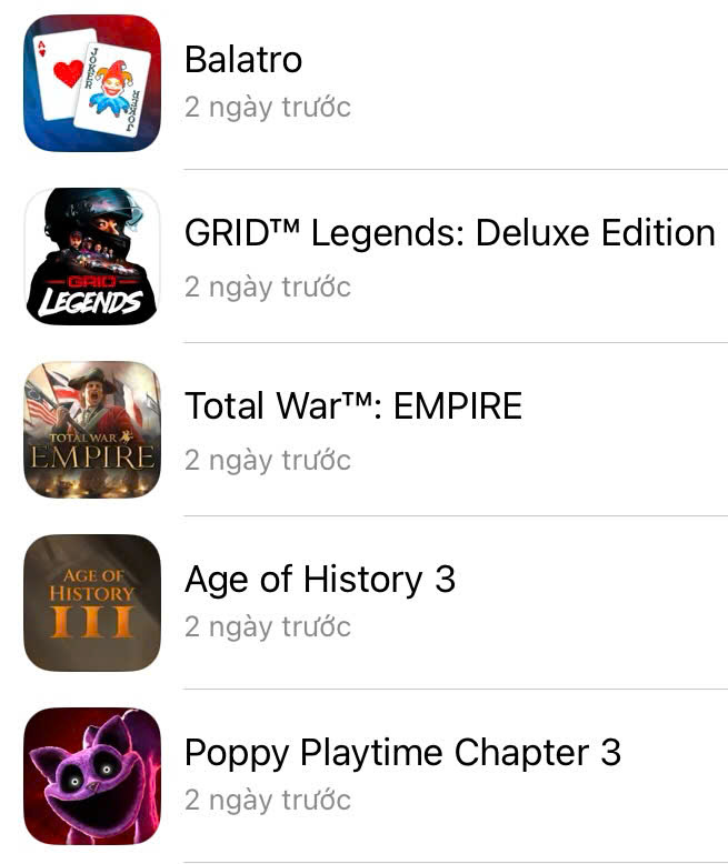 - ID Số 15: Balatro, GRID Legends, Total War, Age of History 3, Poppy Playtime 3.